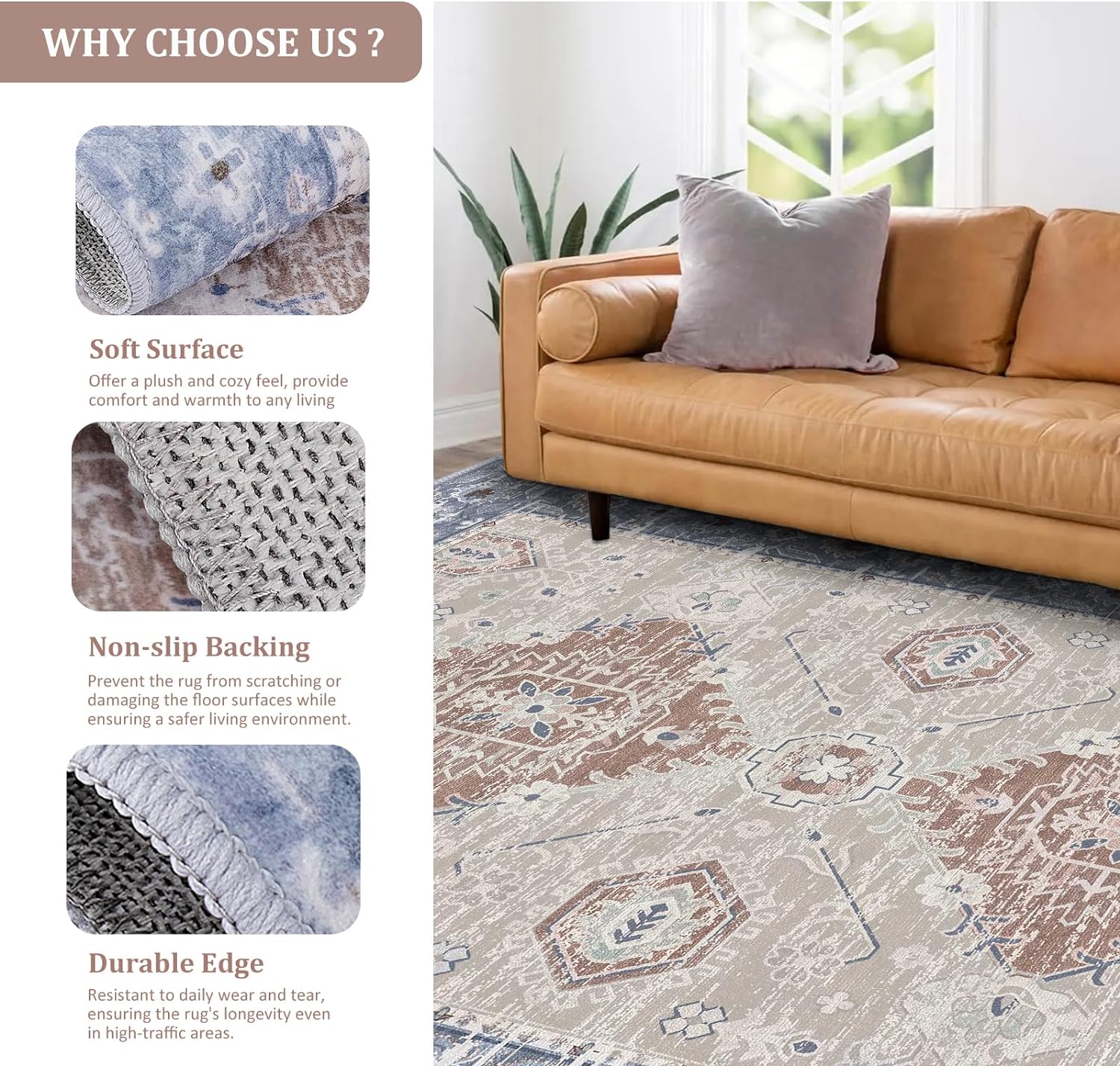 • 【Supreme Comfort and Slip Resistance】Made of durable and ultra-soft faux wool fibers, it provides a luxurious and cozy feel for any setting. The non-slip backing ensures safety while protecting your floors from scratches, creating a secure and comfortable living environment. (Equipped with 4 non-slip rug pads to help keep your rug in place & make corner flat )