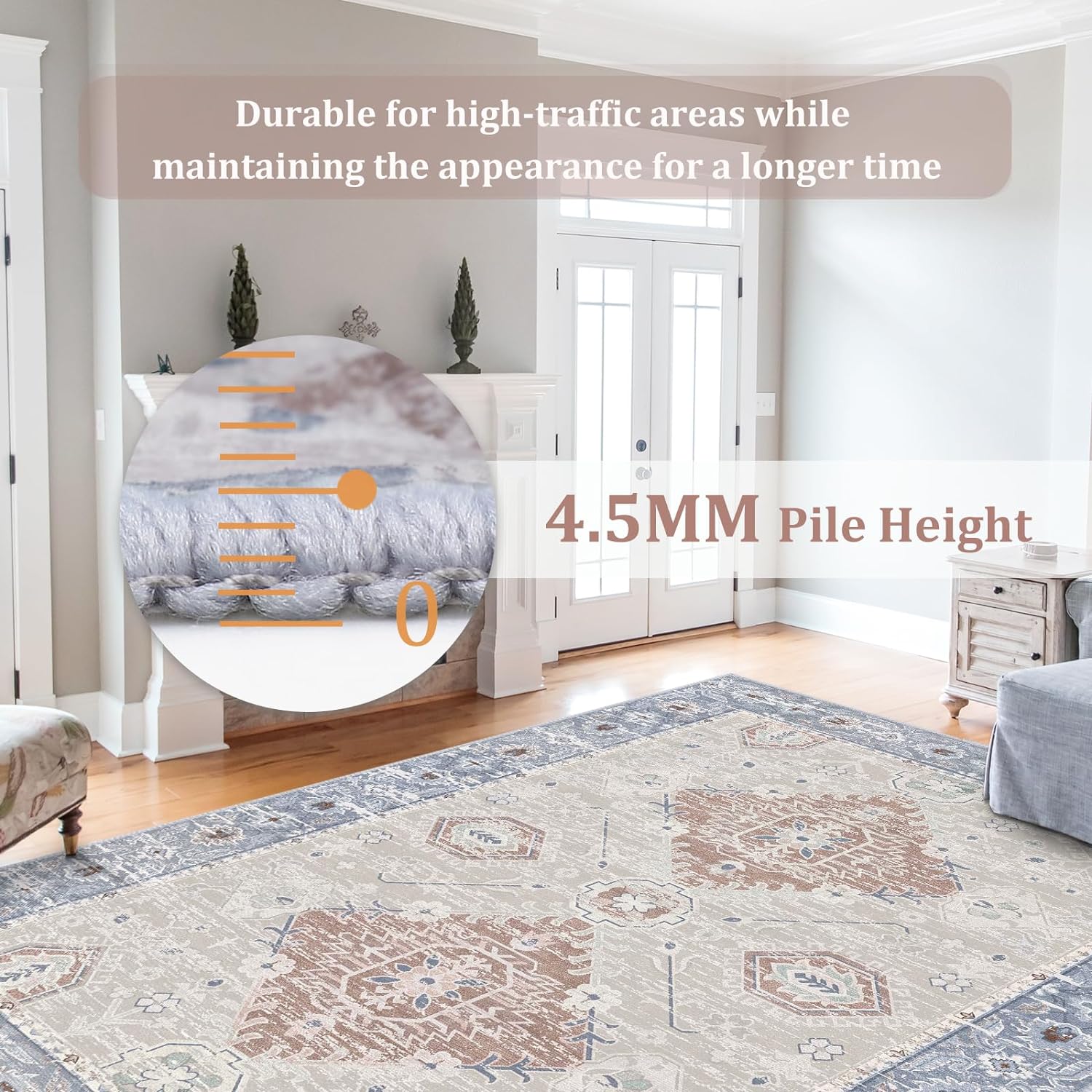 • 【Durable and Long-Lasting】The rug is built for high-traffic areas. Our area rug boasts just the right low pile height that not only adds to its opulent texture but also ensures its enduring beauty. Withstand daily wear and tear while enjoying long-lasting elegance.